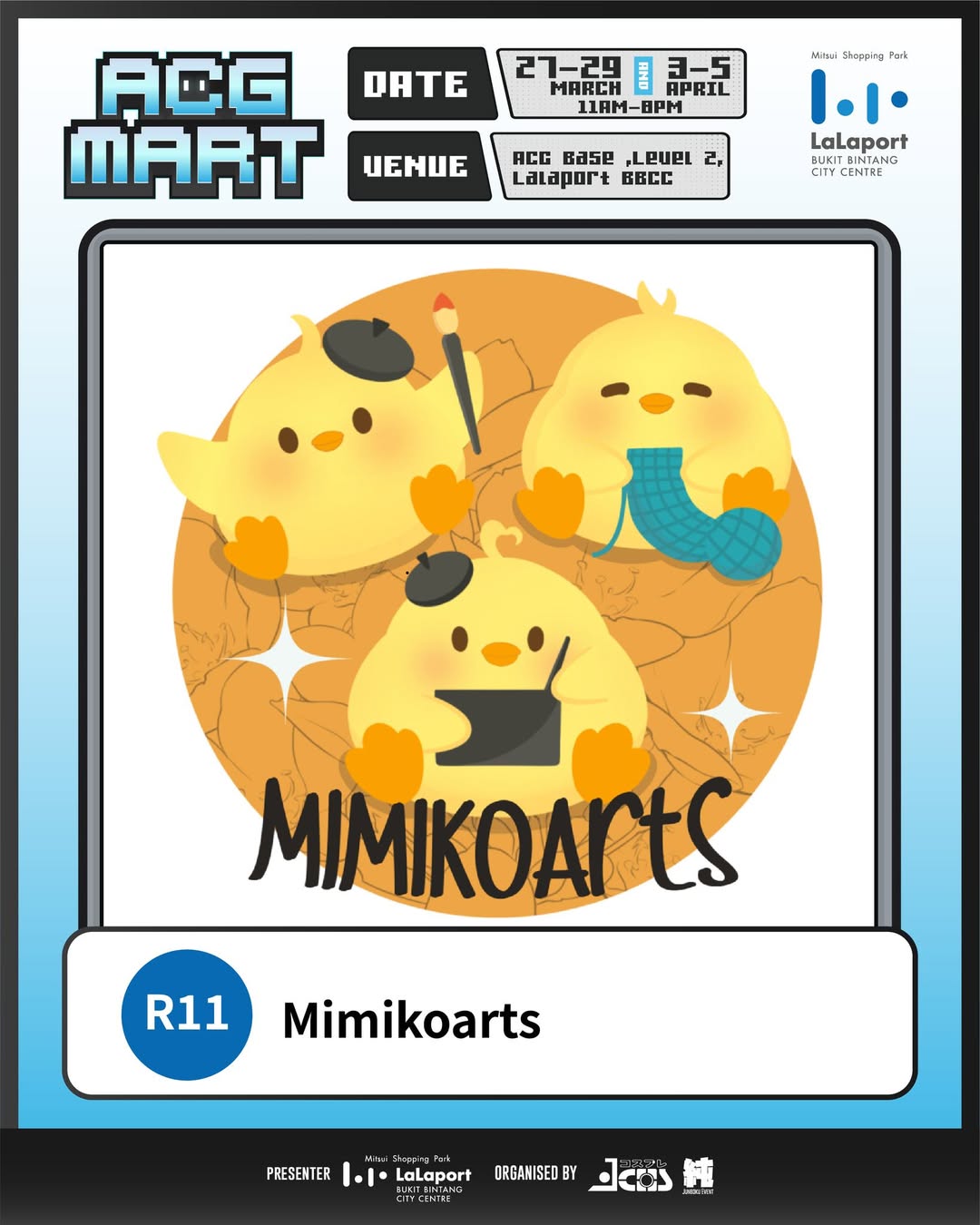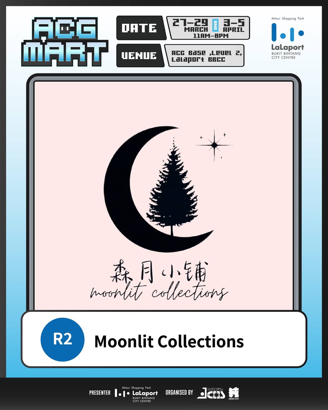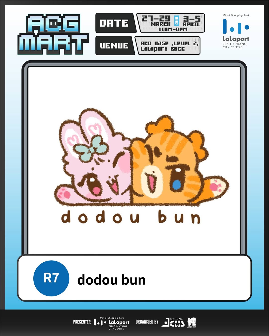 Mitsui Shopping Park LaLaport Bukit Bintang City Centre is pleased to announce the return of the highly anticipated ACG Mart. Hosted at the dedicated ACG Base on Level 2, this event serves as a premier gathering point for fans of Animation, Comics, and Games (ACG), showcasing a curated selection of local talent and interactive experiences.